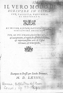 | Il vero modo di scrivere in cifra |  | Giovanni Battista BELLASO 1553 (Italienisch)